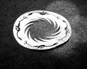 “青銅器看三星堆,金器玉器看金沙。”展廳中有不少金沙遺址出土的金器。其中“太陽神鳥”金箔是中國文化遺產(chǎn)標(biāo)志“太陽鳥”的來源。薄如紙而雕工精致的鏤空圓形圖案很有動感,“太陽神鳥”金箔的含金量高達94.2%,相當(dāng)于現(xiàn)在23K黃金。金箔的內(nèi)層為一圓圈,周圍等距分布著十二條旋轉(zhuǎn)的齒狀光芒,外層的圖案是有四只相同的逆時針飛行鳥組成,有著“一年四季”的寓意。