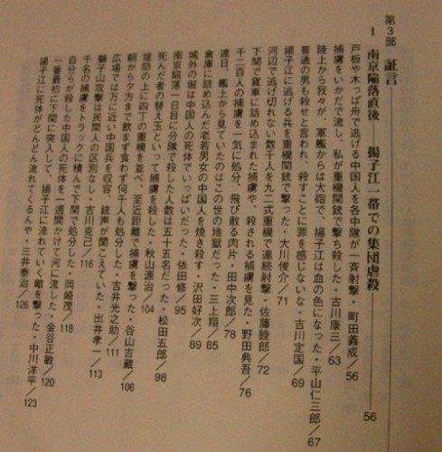 在下關(guān)刑場附近,從城中開來滿載中國人的敞篷卡車絡(luò)繹不絕,停在倉庫中間。作為海軍軍官的奧宮認(rèn)出這支部隊屬于第九師團(tuán)第三十六聯(lián)隊,他走進(jìn)碼頭的倉庫群,看到兩手被綁在背后的十幾個中國人,被一個個拉到江岸邊幾米的地方,用軍刀和刺刀慘殺后,投入揚子江中。江中只見層層疊疊的尸體,靠近岸邊的江水為之阻塞,以肉眼幾乎難看出的速度裹挾著尸體艱難流向下游。但,有些人還沒有徹底死透,掙扎著向岸邊淺灣處逃生,那附近已經(jīng)是一片血海,因為那里等待他們的,是早有準(zhǔn)備的槍擊和刺刀。整個過程如同流水線一樣秩序井然,連大聲指揮的人都沒有?磥恚黠@是根據(jù)上級的命令在進(jìn)行。我向刑場入口的一個下士問道:"這么多中國人,就這樣安安靜靜被帶來,你們是怎么做到的?"回答是:"城內(nèi),對著在廢墟上收拾的中國人問:'有肚子餓的舉手',然后把舉手的裝上卡車作出帶去吃飯的樣子,就完成了唄。""那么,為什么用日本刀和刺刀行刑呢?""長官說,為了節(jié)省子彈。"