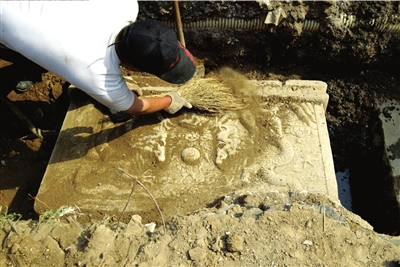 經(jīng)過村民們連續(xù)幾天的挖掘,昨天,昌平區(qū)舊縣村發(fā)現(xiàn)的石碑終于露出了“真容”,石碑分為寫有碑文的碑身和印有二龍戲珠圖案的碑座,碑文顯示該石碑為重建寺的碑記。昌平區(qū)文委和昌平文物所工作人員說,該碑的價值有待進(jìn)一步研究。