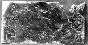 也有學(xué)者認(rèn)為三星堆的“玉石文字”受甲骨文的影響,陳保亞認(rèn)為這種說法會遇到困難,因?yàn)槿嵌盐幕摹坝袷淖帧边處于圖畫和文字并存階段,在形態(tài)上比甲骨文要早,或者說要原始。