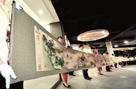 經(jīng)過37位設(shè)計(jì)師1年半時(shí)間的研發(fā),18位專業(yè)高級(jí)繡師歷時(shí)180多天、巧奪天工的繡制,長22米的《清明上河圖》十字繡,昨晚在成都首次公開亮相。這幅特殊的十字繡總共使用了116505米繡線,共計(jì)2032611針,重達(dá)20600克,是目前世界上最長的十字繡藝術(shù)品。18位技師從2008年7月20日起開始繡制,至2009年1月20日完工,共繡制人物814人,動(dòng)物83匹,船只29艘,房屋樓宇30多棟,車13輛,轎8頂,橋17座,樹木180棵,人物往來衣著不同,神情各異,栩栩如生。作品將在第二屆非物質(zhì)文化遺產(chǎn)節(jié)上正式展出。
