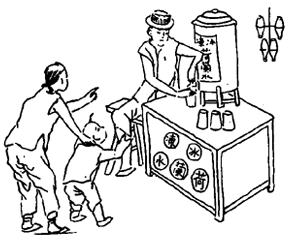 汽水!斑@可是一個(gè)新鮮的玩意兒,喝到肚子里打嗝,熱氣從口腔和鼻孔噴出來,身體就會(huì)涼快下來,所以,汽水很受歡迎!