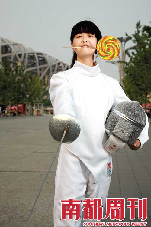 中華女子學院經濟管理系擊劍隊大一女生。攝影·邵欣