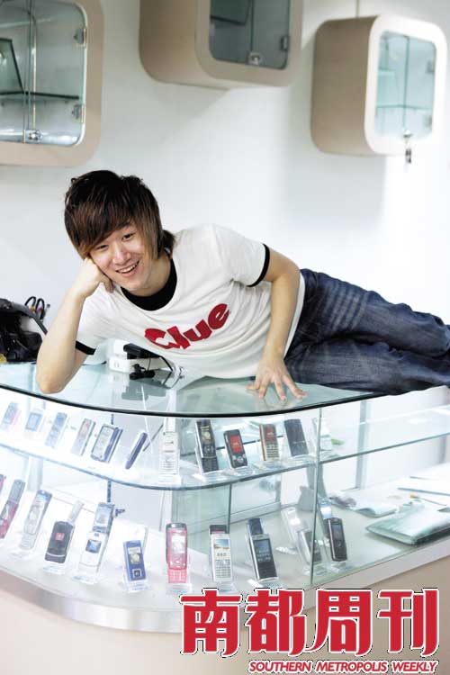 今年3月葉生開了網(wǎng)店,看到淘寶上不少賣家通過發(fā)帖紅起來,葉生也用手機(jī)拍攝了真人秀,從上往下的角度,瘦削的臉頰,金色的長發(fā),朋友看到后笑著大聲叫他帥哥,像極了“至上勵合”的明星劉洲成,于是,葉生就以“花樣美男”為題發(fā)表在論壇上,“發(fā)帖銷售效果一般般,但不少網(wǎng)友留言說我很帥。平時用照片耍耍酷也會吸引到女孩,然后約她們出去玩!北M管沒有在淘寶上紅起來,網(wǎng)店生意也馬馬虎虎,但能溝到女仔,葉生頗為得意。