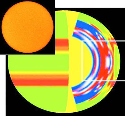 NSO科學(xué)家Frank Hill表示,這便是在太陽上發(fā)生的一切,只不過略有不同罷了。利用一種被稱為日震學(xué)的技術(shù),他和同事Rachel Howe從上世紀(jì)90年代中期開始對太陽射流進行跟蹤研究。這種方法與地震學(xué)家用于探測和評估地震的方法類似,并且由于太陽射流發(fā)生在太陽表面下幾千公里,因此日震學(xué)的應(yīng)用便顯得尤為重要。Hill和Howe發(fā)現(xiàn),與正常情況所需的11年相比,形成于1996年的太陽射流運動得更為緩慢——用了13年才到達了臨界的南北緯22度。