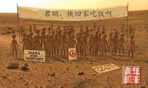 網(wǎng)友繼續(xù)為原本無意義的水帖“增加”意義,帶有“賈君鵬”字樣的PS圖片相繼誕生,有網(wǎng)友在易中天《百家講壇》的照片下方寫,“大家好,我是賈君鵬的班主任”,也有網(wǎng)友在一群外星人舉旗的照片中PS上“賈君鵬你媽媽喊你回家吃飯”的標(biāo)識,或者讓這幾個字出現(xiàn)在《新聞聯(lián)播》的字幕中,賈君鵬成了無所不在的符號,終極的指向是一場集體無意識的搞笑和樂子。