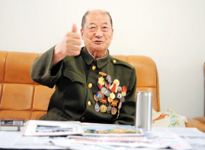 老人說,典禮當(dāng)天,官兵們的早點是高粱米煮白薯和咸菜,“那年月,那條件,沒啥好吃的,可心氣高啊,那感覺比現(xiàn)在吃山珍海味都香!