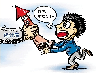 詞匯釋義:近來的新詞中,“被”字輩搶盡風(fēng)頭,前有“被自殺”,后有“被就業(yè)”,如今的掌門人是“被增長”。說的是國家統(tǒng)計(jì)局近日公布的一份統(tǒng)計(jì)顯示,上半年全國城鎮(zhèn)居民人均可支配收入實(shí)際增長11.2%,農(nóng)村居民增長8.1%,遠(yuǎn)超上半年7.1%的經(jīng)濟(jì)增速。從前大家都喊工資收入趕不上GDP增速,如今在數(shù)據(jù)上倒是真實(shí)現(xiàn)了,而且還是在全球金融危機(jī)的背景下。善于質(zhì)疑的網(wǎng)友們,更懂得拿數(shù)據(jù)說話,于是紛紛在網(wǎng)絡(luò)上曬工資。結(jié)果顯示,我們的工資根本沒怎么漲,我們的收入原來是“被增長”了,亦即口袋沒見鼓起來,卻硬要被人說漲工資了。此后,許多媒體紛紛表示,相信國家統(tǒng)計(jì)局,但不能保證下面報(bào)上來的數(shù)據(jù)是否造假。本刊之前還就“被就業(yè)”談過數(shù)據(jù)造假的誘因以及惡劣后果,所以不再詳細(xì)討論,但要強(qiáng)調(diào)一句話,造假數(shù)據(jù)猛于三鹿奶粉。