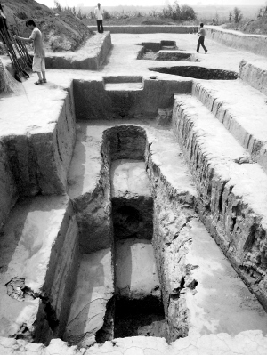 在元氏南白婁村的一處高地上,來自武漢大學(xué)的考古人員已經(jīng)在這里發(fā)掘了近一個月,他們的成果昨天展現(xiàn)在了記者面前,高地東面有20多個長方形坑,坑不大,分布也沒規(guī)律,但大多是兩個一組;高地西面則有6座古代墓葬,它們呈南北方向,都有墓室、墓道,看著明顯比東邊的墓葬要氣派,其中一個墓葬中還有具遺骸,頭沖東腳沖西。武漢大學(xué)考古教研室研究生宋海超告訴記者:“東面的是漢代墓群,兩個一組合葬比較多,都是夫妻,這里出土了成組的陶器,有豆、鼎和壺等,還有幾件彩繪陶器?梢钥闯霎(dāng)時的等級差別比較大。西面初步推斷是唐代墓,墓主人身份目前不清楚,但身份不低,不是平民百姓!