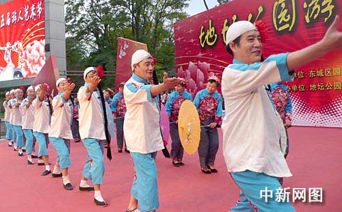 中新網(wǎng)北京8月21日電 (譚旭燕) 北京地壇公園作為建國(guó)六十周年游園活動(dòng)十大重點(diǎn)公園之一,20日晚在公園北門(mén)文化廣場(chǎng)舉行第五屆游人藝術(shù)節(jié),為迎國(guó)慶拉開(kāi)紅火的序幕。
