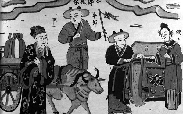 詩中的牛郎、織女分隔于天河兩岸,男的放牛,女的紡織,終日辛勤勞作,但因煩擾于彼此的無盡相思而收效不大,詩中可以使人隱約感覺到二人相望而不能相聚的幽怨之情。《詩經(jīng)》中這種隱隱約約的表達(dá)方式,就構(gòu)成了后世這一傳說的基礎(chǔ)。至《史記·天官書》中,便有了“織女,天女孫也”的說法。于是,在漢代的詩文中,就增加了故事的許多內(nèi)容,對女主人公因被迫分離而造成的痛苦的描寫更具體化了。如《古詩十九首》中的《迢迢牽牛星》詩: