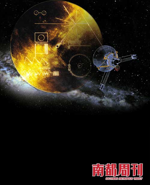 兩艘“先驅(qū)者號(hào)”飛船上都安裝有一個(gè)金屬板,它可謂是地球人送給外星人的“名片”。金屬板的左側(cè)刻有太陽(yáng)系的圖案;右側(cè)刻有一個(gè)男人和一個(gè)女人的圖像,男人在招手致意;下方刻有太陽(yáng)及太陽(yáng)系九大行星的編碼。在兩艘“旅行者號(hào)”飛船上都裝有送給外星人的“郵包”:一個(gè)圓形鋁盒,里面放著一張鍍金視聽(tīng)光盤(pán)。讀取光盤(pán)數(shù)據(jù)的說(shuō)明寫(xiě)在鋁盒的蓋子上。光盤(pán)上收錄了 115張圖片,介紹了地球文明最重要的一些資料 (如中國(guó)萬(wàn)里長(zhǎng)城、脫氧核糖核酸的分子式等);錄有地球人用 55種語(yǔ)言向外星人發(fā)出的簡(jiǎn)短問(wèn)候;存有 35種聲音信息;還有地球人的音樂(lè)文化(如巴赫的作品、爵士樂(lè)、中國(guó)名曲《高山流水》等)。
