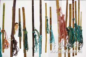 把自己當(dāng)成雕塑一動不動、把自己掛在鐵桿上被灑水車噴水……昨日,重慶首屆中德青年裝置藝術(shù)作品展——“現(xiàn)實中的影像”在黃桷坪當(dāng)代美術(shù)館正式開展。20多位中德青年藝術(shù)家?guī)砹?0件稀奇古怪的作品,其中,用每根100元收購來的棒棒讓參觀者留下了深刻的印象。