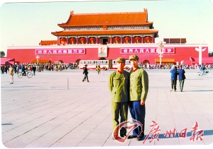 “我們哥倆兒幾乎是同步通過(guò)了天安門,這在全國(guó)參加國(guó)慶閱兵的官兵中都是罕見(jiàn)的!52歲的李鳴捷如今是中國(guó)銀行成都高新技術(shù)產(chǎn)業(yè)開(kāi)發(fā)區(qū)支行行長(zhǎng)。1984年10月1日上午10時(shí)許,展示中國(guó)改革開(kāi)放和現(xiàn)代化建設(shè)巨大成就的國(guó)慶35周年大閱兵盛典上,李鳴捷在排序第一的軍事學(xué)院方隊(duì),鏗鏘正步走過(guò)金水橋旁。此時(shí),弟弟李明偉和戰(zhàn)友駕駛的機(jī)群,也呼嘯長(zhǎng)空,在天安門上空中舞出四色彩煙,共慶盛典。退伍多年,兩兄弟很少主動(dòng)提及這段經(jīng)歷,但當(dāng)年受閱的那身軍裝卻一直珍藏。