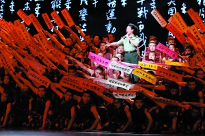 《復興之路》從創(chuàng)排到成型已經(jīng)經(jīng)歷了近1年的時間,也許是為了保持神秘感,臨近正式演出才首次讓記者探班。被問及此次演出的特點時,昨日總導演張繼剛以“情理之中,意料之外”來形容,即反映大眾都了解的史實,但呈現(xiàn)手法包括音樂、舞蹈、朗誦、舞美、音響等,以此營造出“前所未有的廣場藝術(shù)和舞臺藝術(shù)結(jié)合的全新的藝術(shù)結(jié)構(gòu)”。