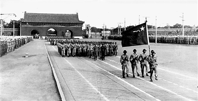 隨后,毛澤東等領(lǐng)導(dǎo)人乘車出中南海東門(mén),從故宮西華門(mén)南拐至闕右門(mén),再往南直達(dá)天安門(mén),登上了城樓的100級(jí)臺(tái)階……