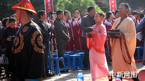 伴隨著鐘鼓齊鳴,40條論語牌樹立在大典兩側,60名優(yōu)秀學子舉行成人典禮,意在秉承孔子的思想,發(fā)揚圣人的風氣。