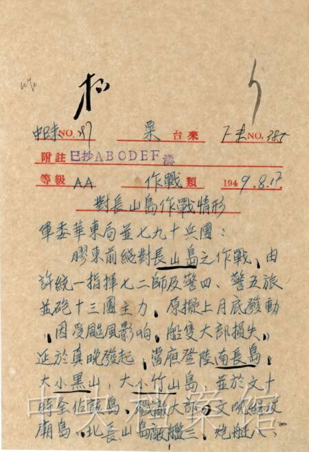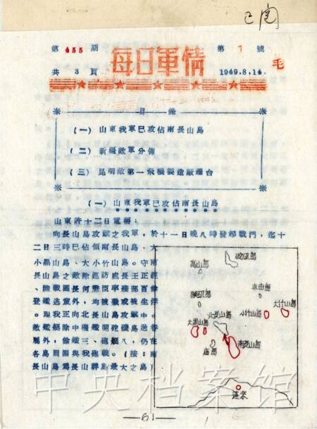 長山列島位于山東半島與遼東半島之間,扼渤海灣門戶,由南、北長山島等17個島嶼組成。山東半島解放后,退據(jù)長山列島的國民黨軍陸戰(zhàn)第2團(tuán)等部,破壞漁業(yè)生產(chǎn)和海上交通,妄圖封鎖渤海灣。1949年8月,中國人民解放軍山東軍區(qū)指揮進(jìn)行解放長山列島的作戰(zhàn)。11日晚,第24軍第72師和警備第4、第5旅分別從蓬萊縣劉家旺、欒家口、解宋營起渡。12日凌晨,警備第4、第5旅攻占長山列島兩翼大小黑山島、大小竹山島,牽制停泊在南北長山島的國民黨軍艦艇。第72師在友鄰配合下,接近南北長山島,并在炮火掩護(hù)下迅速登島,與國民黨守軍展開激戰(zhàn),上午攻占南長山島,下午占領(lǐng)北長山島。爾后以警備第5旅為主,向砣磯島、大小欽島、南北皇城島發(fā)展進(jìn)攻。至20日,國民黨守軍殘部棄島逃遁,人民解放軍收復(fù)了國民黨軍隊占領(lǐng)的大小島嶼,殲國民黨軍15OO余人,山東省全境解放。