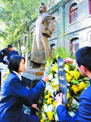 1923年至1929年,錢學(xué)森在師大附中完成了中學(xué)學(xué)業(yè)。在他曾度過(guò)5年學(xué)習(xí)時(shí)光的附中紅樓前,一尊銅像屹立,年輕的錢學(xué)森身穿長(zhǎng)衫,戴著圍巾,手拿書本,意氣風(fēng)發(fā)。紅樓一層的五間教室如今成為了錢學(xué)森展覽館,陳列有錢老的手稿、照片、書籍等數(shù)百件展品。