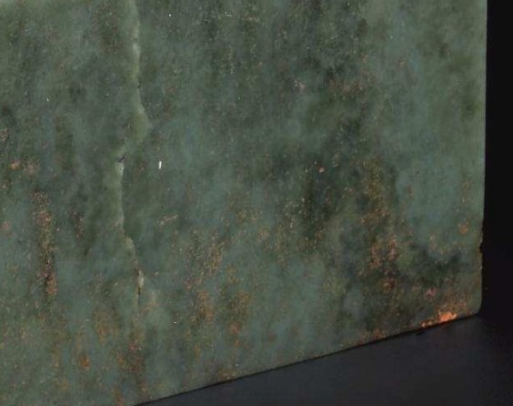 李教授現(xiàn)為江蘇省書畫鑒定小組主任委員,他潛心研究篆刻三十多年,他向記者介紹:清代乾隆二十五年后時(shí)玉器制作進(jìn)入玉器史上的鼎盛期,而在玉器質(zhì)地的選料上,都是由新疆大吏搜羅開采頂級(jí)的上品而充貢內(nèi)廷。而且皇帝玉璽成品都很規(guī)整,幾乎做到玉璽無筋、無柳、無瑕,用于制作玉璽都為最好的肉質(zhì),開料與玉璽制成的比率很低,原料的浪費(fèi)極大,為的就是選料的純靜,美玉良工以確保玉璽的精美度,而此次拍賣的乾隆“八徵耄念之寶”青玉璽,目鑒便知玉質(zhì)上有大片的柳絮紋。(圖一)玉質(zhì)當(dāng)屬普通青玉料,皇家玉璽是不會(huì)選這種檔次的玉料制作的。
