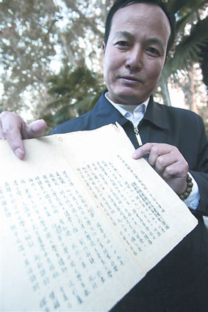 收藏這份手稿的藏家是浠水縣聞一多紅燭書畫院院長汪德富。昨日,汪德富向本報記者講述了手稿的來由和發(fā)現(xiàn)過程。