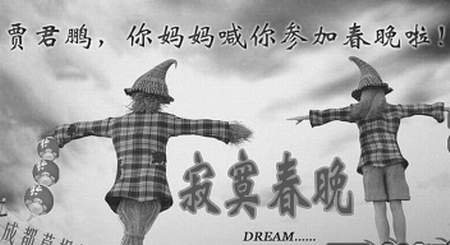 雖然離春節(jié)還有一段時間,但山寨春晚的話題再一次被提起。昨日,以拍攝草根電影、山寨奧運、山寨克隆版《風聲》、去年舉辦豬堅強草根春晚而聞名的“成都草根劇組”再一次以樂活精神舉起了成都草根春晚的旗幟——今年,成都的草根春晚將大打網(wǎng)絡牌,將寂寞黨、賈君鵬等一系列轟動網(wǎng)絡的熱門話題納入春晚節(jié)目中,且春晚名字就叫做“寂寞春晚”。為了辦好草根春晚,網(wǎng)友正召集綠林草根,為“寂寞春晚”尋找不甘寂寞的坊間好漢以及山寨場地。