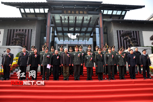 湖南省軍區(qū)司令員張永大,中共湖南省委常委、省軍區(qū)政委楊忠民,軍表捐贈(zèng)者、原湖南省軍區(qū)副司令員黃明開,湖南省軍區(qū)副司令員張中湘,湖南省軍區(qū)副政委萬建華,湖南省軍區(qū)副政委魏永景,湖南省軍區(qū)參謀長李蘭田,湖南省軍區(qū)政治部主任劉新等出席開展儀式并剪彩。為大渡河十八勇士吹響沖鋒號(hào)、92歲高齡的老紅軍張生榮、抗洪英雄李向群烈士的父親李德清、肖日忠烈士的女兒肖麟也親臨現(xiàn)場(chǎng)為開展祝賀。