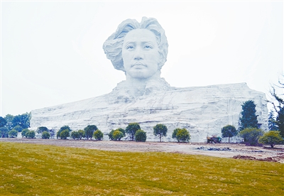 青年毛澤東藝術(shù)雕塑是2007年2月經(jīng)中共中央辦公廳批準(zhǔn)后建設(shè)的。雕塑總高度為32米、長(zhǎng)83米、寬41米、基座3500平方米,由8000多塊巨石拼接而成,總重量約2000噸。