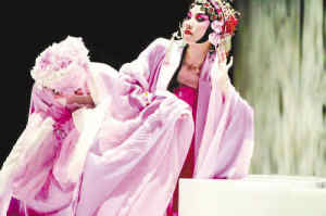 《中國制造——游園驚夢》中,金星把自己大而化之了,將更多的動作交給了群舞演員,自己卻在口唱昆曲的女旦后面,如同影子一樣重復相同的圓場動作。一前一后,兩個杜麗娘,當然可以看作形式上的設計,但金星不會做一個簡單的決定。衣飾更為亮麗的女旦交錯了杜麗娘的身份和創(chuàng)作者自己的心聲,她是一個站在前臺的代言體,作品真正的主角則處在后面更為安全的位置上裊娜如煙!吨袊圃臁螆@驚夢》可以看作是對《貴妃醉“久”》的延伸,借戲曲女旦代言,使作品充滿了傳統(tǒng)與現(xiàn)代社會的錯亂,但社會性的時間對于癡人來說,從心理上是不存在的,在自我的世界中,只有性別的錯亂、情感的矛盾和心理的惶恐。電影《霸王別姬》中,程蝶衣就是這樣一種人物。