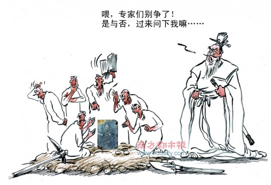 研究漢魏石刻的中國政法大學教授黃震云致電本報說,他認為曹操墓的認定“非常搞笑”。專欄作家、歷史學者陶短房認為曹操手下的軍官墓里都可能放一個曹操用過的武器,“如果我非要說這是許褚的墓地,他拿什么反駁?”