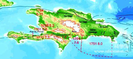 McCann認(rèn)為,還可能有更多的人死去。他說,如果這個(gè)曾于1770年斷裂的斷層再一次釋放全部的壓力,它將形成另一場(chǎng)里氏7.5級(jí)的地震,而太子港也將被全部摧毀。此外,在伊斯帕尼奧拉島——海地和多米尼加共和國(guó)所在地——的其他地方依然存在大破壞的可能性。1751年,一場(chǎng)里氏8.0級(jí)的地震——比這次的海地地震猛烈32倍——沿著潛伏在島下的相同斷層襲擊了多米尼加共和國(guó)的南岸。兩個(gè)月后,這里又發(fā)生了一場(chǎng)7.5級(jí)的地震。而隨后便是發(fā)生在1770年的地震。同時(shí)還有一條單獨(dú)的活躍斷層穿過了該島的北岸。