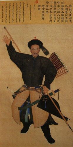畫作的左上角注明滿文和漢文題贊:“頭等侍衛(wèi)固勇巴圖魯伊薩穆,援兵雖來(lái),畫塹相望,孰騎而呼,為告無(wú)恙,維巴圖魯,偕往趣師,其沖賊隊(duì),如分水犀”——勇士的英名、事跡也和勇士的肖像一起懸掛朝堂,詔告天下,永存美譽(yù)了。
