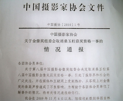前不久中攝協(xié)通過2010年一號(hào)文件,在回應(yīng)攝影金像獎(jiǎng)得主桑玉柱涉嫌造假事件時(shí),稱“一些人將矛頭對(duì)準(zhǔn)金像獎(jiǎng)組委會(huì)和中國(guó)攝影家協(xié)會(huì),全盤否定中國(guó)攝協(xié)近年來在各方面的工作。還有一些人在互聯(lián)網(wǎng)上公然借機(jī)攻擊黨領(lǐng)導(dǎo)下的文藝界人民團(tuán)體體制,攻擊黨的文藝方針政策!钡,許林認(rèn)為文件措辭過分。