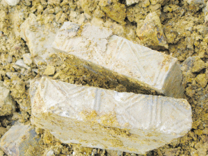 該工地位于高淳固城湖風(fēng)景區(qū)西側(cè)的淳南路旁。記者踩著泥濘的土地,爬上東側(cè)一座小山丘。環(huán)顧地面,記者才發(fā)現(xiàn),腳下就是一座古墓,幾塊殘破的青磚隨地可見(jiàn),再仔細(xì)輕輕地扒開松散的土層,只見(jiàn)一段帶有花紋的青磚排列著!澳銈冞^(guò)來(lái)看,這里有一個(gè)盜坑。”隨著專家手指的方向,記者看見(jiàn)了一個(gè)很大的盜坑,周邊土層上全是大大小小的探洞。記者跟隨考古人員發(fā)現(xiàn),位于這座古墓北面約四五米處又是一座古墓,已經(jīng)基本被鏟平,再往北,還有一座,也同樣毀壞慘重。