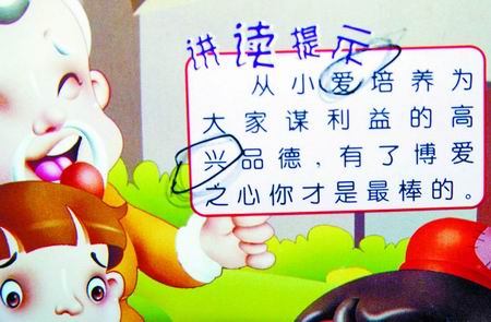 趙先生告訴記者,他買的是“寶寶第一本精典童話”叢書中的一本《神筆馬良》。仔細(xì)翻看,錯(cuò)誤百出。在“從小愛培養(yǎng)為大家謀利益的高興品德”(如圖)這一句話中,居然出現(xiàn)兩處錯(cuò)誤:其中“從小愛培養(yǎng)”中的“愛”應(yīng)為“就”;“高興品德”中的“興”,應(yīng)為“尚”。該書中為“哪吒”的“哪”注音竟是“na”……