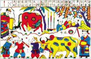 這里重點要說的是立春日的迎春。立春在陽歷的二月四日或五日,不同的年份,該日或在春節(jié)之前,或在春節(jié)之后,但其迎春活動,同春節(jié)的喜慶是聯(lián)為一體的。迎春活動的主體是鞭春牛,舊時用以表達勸農(nóng)和春耕的開始。宋孟元老《東京夢華錄》云:“立春前,開封府進春牛入禁中鞭春。開封、祥符兩縣,置春牛于府前,至日絕早,府僚打春,如方州儀。”而《正德瓊臺志》對于此俗的記載更為詳細:“迎春日,府衛(wèi)官盛服至于東郊迎春館,武弁各競辦雜劇故事,會聚逞炫。俟祭勾芒神畢,前導(dǎo),城市內(nèi)外老稚集于通衢,各攜婦幼,男女競看士牛自河口街從西門(或南門)入府,將豆谷灑之,謂消壓痘疹。是日以面餅裹生菜諸肉品啖之,曰春餅!薄兜拦猸傊莞尽匪浳淖致杂胁煌,如“迎春日”作“立春前一日”,“府衛(wèi)官”作“府縣官”,“武弁”作“街坊”,吃春餅作“親鄰以春餅相饋遺”,但大體程序是相同的。蘇軾貶瓊時,有《減字木蘭花·海南春詞》記此盛況,氣氛異常濃郁:“春牛春杖,無限春風(fēng)來海上。便丐春工,染得桃紅勝肉紅。春幡春勝,一陣春風(fēng)吹酒醒。不似天涯,卷起楊花似雪花!笨芍毫(xí)俗從北至南,從宋到元至明清乃一脈相承。