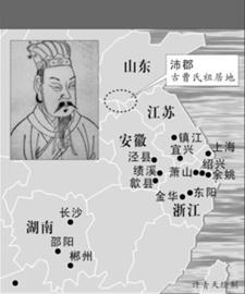 通過對(duì)這一百多件族譜的全面查閱、辨別梳理,曹操后裔可能的分布遷移圖逐漸顯現(xiàn),甚至精確到縣——古曹氏主要在漢時(shí)名為沛郡的地方活動(dòng),也就是如今江蘇北部、安徽的一部分、河南到山東交界地區(qū)。從族譜的反映情況來看,此后曹家發(fā)生了很大的遷徙,方向往南走的居多,且主要是分布在長(zhǎng)江流域,如浙江的東陽、蕭山、紹興、余姚、金華,江蘇的宜興、鎮(zhèn)江,安徽的涇縣、歙縣、績(jī)溪,湖南的郴州、益陽、長(zhǎng)沙,甚至包括上海。