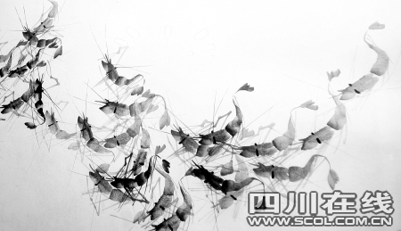 昨日下午,記者來到衛(wèi)保貴生前的家中,一進門就看見一大幅衛(wèi)老畫的蝦圖,畫中的蝦通明剔透,跳脫自如,神韻畢現(xiàn)。