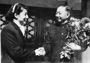 10月22日是梅先生生日。父親想,總得有所表示吧。那時社會風氣非常純樸,不興送禮,而且公家也少有這方面的開支。父親就自作主張拿了個主意,既有意義,又不張揚。他找到梅先生的弟子李慧芳,李很驚訝地說:你怎么知道得這么準確?我還搞不清是哪一天呢。父親說,我們兩人合作給梅先生祝壽,他不喜歡送禮鋪張,我準備一束鮮花,您作為弟子向梅先生獻花,我給你們拍一幅照片,你看怎么樣?李慧芳很高興,他們又征得了梅先生的同意。那時鮮花也不是很好買,父親自己掏錢費了一番工夫才買到。22日上午,就在山東劇院前,梅先生接過李慧芳獻上的鮮花抱在懷中,微笑著與慧芳握手,父親用借來的一部高級德國相機按下了快門。這幅照片非常成功,沖洗出后梅先生非常滿意,連聲說:好!好!我這么多年沒照過這么好的照片了。李慧芳也十分珍視這張照片,前些年還向父親討尋原版照片,抱怨說這幅照片在家中總是被人“搶”走。至今李慧芳家中客廳懸掛的仍是放大了的這幅照片。當晚,梅先生演出了《霸王別姬》。