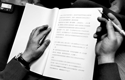 在草草瀏覽了數(shù)行文字后,周立波突然猛地將文件夾合攏,“太亂了,一會(huì)兒上臺(tái)再來理理思路。”他交代助手稱,務(wù)必把夾在文件夾上的計(jì)時(shí)器調(diào)好時(shí)間,徹底拋棄了這份無“大哥”把關(guān)的提綱,做好了即興發(fā)揮的準(zhǔn)備。