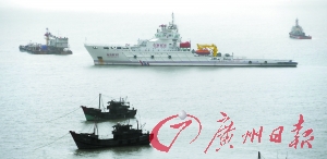 昨日上午11時(shí)許,本報(bào)記者搭乘渡輪抵達(dá)南澳島,還未進(jìn)入縣城,在環(huán)島公路就遠(yuǎn)遠(yuǎn)望見(jiàn)了停在港灣內(nèi)的“南天順”號(hào)打撈船、“德新”號(hào)拖輪。此時(shí),“南澳 Ⅰ號(hào)”水下考古隊(duì)隊(duì)長(zhǎng)崔勇正在忙碌著為這個(gè)打撈船組辦理相關(guān)的打撈許可手續(xù)。據(jù)了解,由于氣象條件改善,“南天順”號(hào)打撈船已確定今天進(jìn)行定位。昨日下午,“南澳Ⅰ號(hào)”水下考古隊(duì)員們?cè)谶叿琅沙鏊淖o(hù)送下,已搬運(yùn)相關(guān)設(shè)備進(jìn)駐南天順。