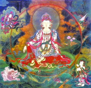 在題材上,法海寺壁畫突出體現(xiàn)了我國古代繪畫繼承傳統(tǒng)與時代創(chuàng)新的藝術(shù)特色。如佛教繪畫二十諸天《帝釋梵天圖》,是在唐代形成的一種佛教題材模式。法海寺壁畫中所繪制的二十諸天模式,完全保留了原來的密宗體系,具有典型的唐代傳統(tǒng),但是在繪法上,又具有明顯的時代風(fēng)格,創(chuàng)造和表現(xiàn)了明代人物的氣質(zhì)與內(nèi)涵,使人物與動物塑造突破了僵硬的傳統(tǒng)表現(xiàn)模式。