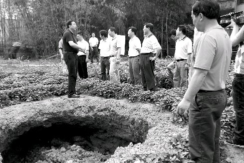 昨日,四川省地勘局202地質(zhì)隊(duì)地質(zhì)工程勘察院院長謝兵說,通過對現(xiàn)場的觀察,當(dāng)?shù)貙倏λ固氐孛,地下的溶洞分布較為復(fù)雜,初步懷疑當(dāng)?shù)氐叵滤乃幌陆,造成地面泥土松?dòng),最終發(fā)生坍塌。謝兵表示,接下來,他們將花1個(gè)半月的時(shí)間對“天坑”周邊進(jìn)行鉆探,查清“天坑”形成的原因和溶洞的分布情況及地下水水位下降所帶來的影響。