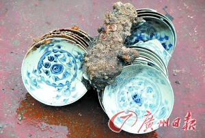 “南澳Ⅰ號”明代古沉船部分隔艙板已在水底現(xiàn)身,各組隔艙板之間滿是一摞摞碼放整齊的文物。記者昨日從廣東省文物局獲悉,由廣東省文物考古研究所與國家水下文化遺產(chǎn)保護中心共同實施的“南澳Ⅰ號”水下考古項目已經(jīng)取得階段性進(jìn)展,水下考古隊在抽取沉船上層覆蓋淤積物的過程中,已經(jīng)清理出相互平行的3組木質(zhì)沉船隔艙板,隔艙板之間間隔約為1米,這些間隔就是古船裝載貨物的空間。昨日,在發(fā)掘進(jìn)入船艙內(nèi)后,文物出水速度極快,昨日下午專家對已發(fā)現(xiàn)的“一號艙”進(jìn)行打撈,結(jié)果讓八吊籃文物從海底重見天日。