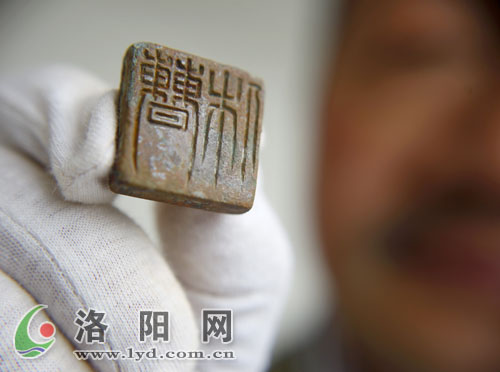 后室西南角的地面上,一方銹跡斑斑的印章赫然“躺”在地上。“我們當(dāng)時激動得要命,考古中能得到文字性的東西,簡直就是驚天發(fā)現(xiàn)!”李光夫笑著說,當(dāng)時,大家小心翼翼地將印章用密封袋保存,然后給領(lǐng)導(dǎo)打電話“報喜”。