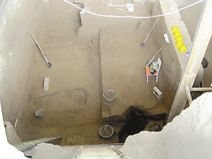 那么,與之緊鄰的1號陪葬墓是什么樣的呢?考古隊(duì)員告訴記者,此墓小于曹操墓,不是磚石墓,而是土坑墓,在迄今為止的發(fā)掘進(jìn)程中未發(fā)現(xiàn)一磚一石,全是土,且多處塌方!巴量幽乖趹(zhàn)國時(shí)期就有,魏晉南北朝時(shí)期很流行。安陽之前也發(fā)現(xiàn)過不少土坑墓,但從來沒有見過像1號墓這么大的!痹摽脊抨(duì)員告訴記者,土坑墓有個好處,因?yàn)槎家阉,盜墓賊盜的時(shí)候要比磚石墓復(fù)雜得多。