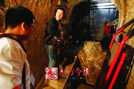 在墓穴底部,有一堵高約1米的土墻,記者注意到,墻內(nèi)鑲嵌著一些磚瓦片,已經(jīng)露出。據(jù)考古人員介紹,在12日的發(fā)掘中,考古人員極有可能剝開該堵墻,至于有無重大發(fā)現(xiàn),值得大家期待。