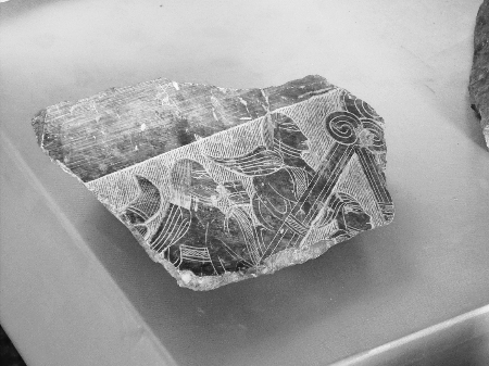 專家孫新民說(shuō),該銘牌是在鋪地石的下面發(fā)現(xiàn)的,是用犀器做的盾牌。
