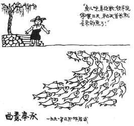 1957年,華君武推出了“人民內部諷刺漫畫”。他針對大躍進浮夸風創(chuàng)作了《疲勞過度癥》,針對動不動給人扣大帽子創(chuàng)作了《杜甫檢討》,針對長篇空洞發(fā)言創(chuàng)作《誤人青春》,針對生造簡化字創(chuàng)作《倉頡認字》,針對多子女創(chuàng)作《大“小家庭”》,批評相聲水平不高創(chuàng)作了《聽相聲?》等,都給讀者留下了極為深刻的印象!皟炔恐S刺漫畫”在“文革”中成為“罪證”,遭到長期批判,華君武被迫擱筆10年,但”文革“后,這把”匕首“依然鋒芒犀利,創(chuàng)作出一系列批評諷刺時弊和人性弱點的漫畫。