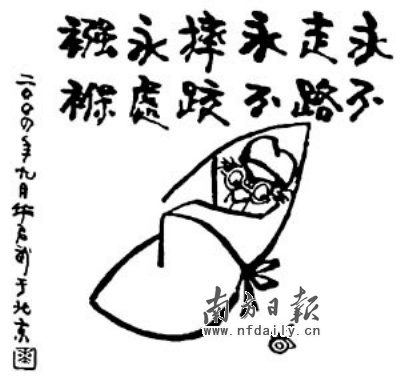 我在中央美院學(xué)習(xí)的時(shí)候,他在《人民日?qǐng)?bào)》做編輯,經(jīng)常會(huì)到中央美院。1960年,我在北京農(nóng)民運(yùn)動(dòng)講習(xí)所畫(huà)歷史畫(huà)的時(shí)候,他和美術(shù)界領(lǐng)導(dǎo)人王朝聞、蔡若虹等對(duì)我的創(chuàng)作都有關(guān)注。華君武老師為人正直,對(duì)年輕一代沒(méi)有架子,講話幽默風(fēng)趣,令人回味再三。他對(duì)年輕畫(huà)家愛(ài)護(hù)有加,就像朋友一樣沒(méi)有架子。我們?cè)谏鲜兰o(jì)80年代曾經(jīng)一起在深圳開(kāi)會(huì),當(dāng)時(shí)我畫(huà)了他的肖像畫(huà),他的題跋非常有趣。